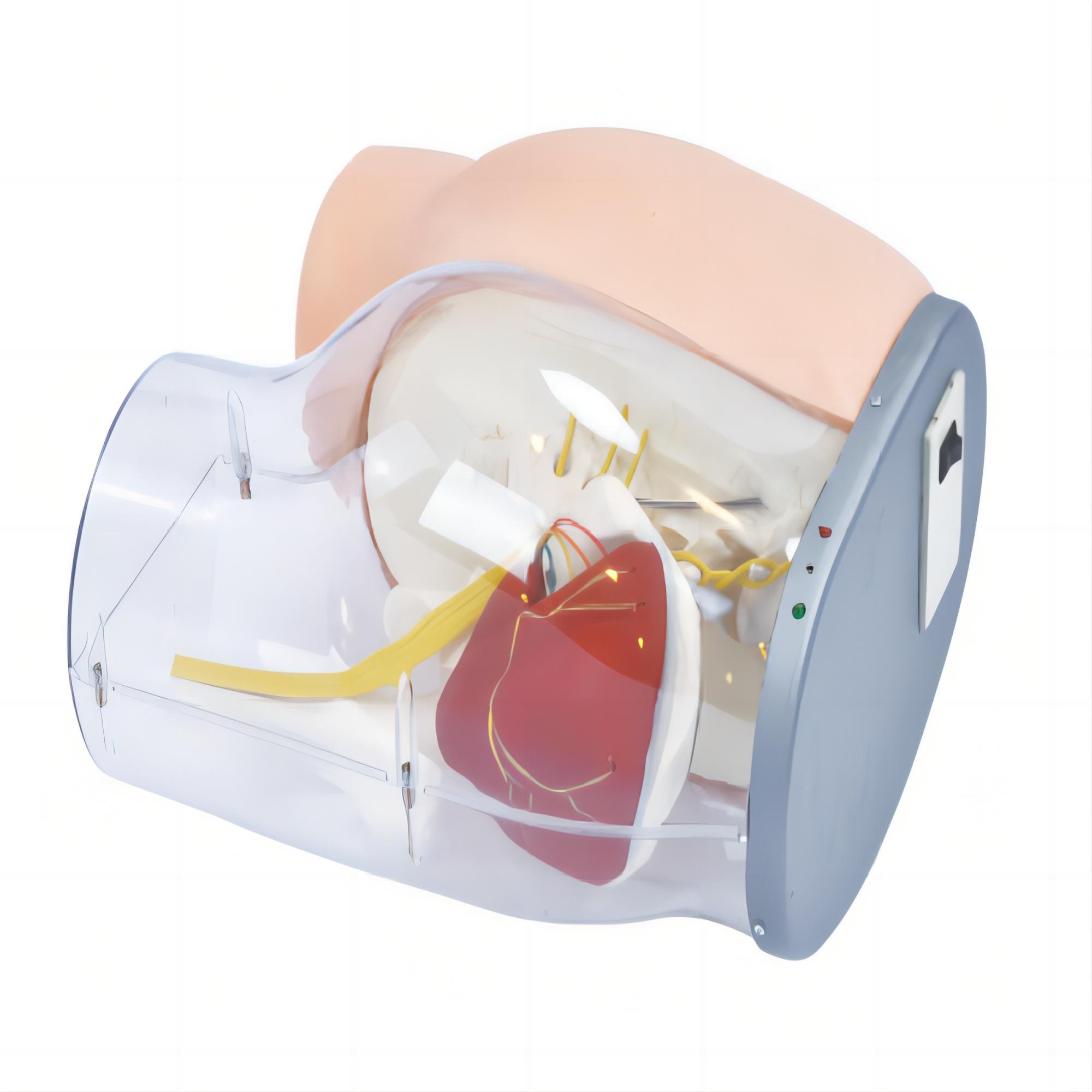 這款高級注射訓練模型功能優異。半邊透明設計呈現臀部關鍵結構,助學員訓練時精準避開神經血管;骨骼標志可觸,利于找準注射部位;注射正確液體能順利流入儲液袋,且有綠燈提示,有誤則閃紅燈、響警報。皮膚采用進口材料,手感真實、耐用無痕。還配有注射器等附件,方便實用。