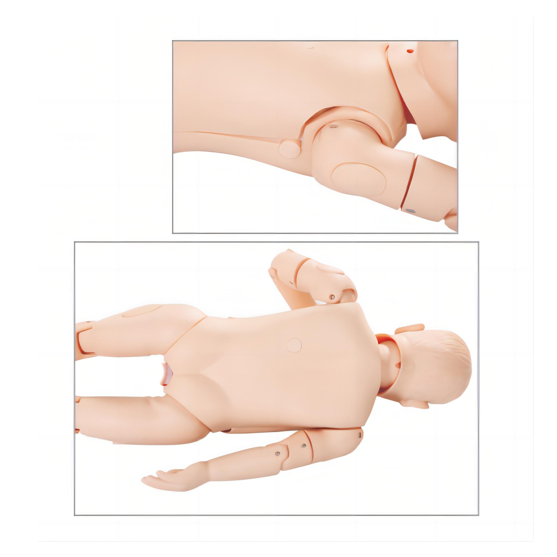 靜脈介入訓練模型專為醫學訓練設計。仿真標準化病人呈平臥位,質地柔軟、觸感真實,外觀栩栩如生。體表標志清晰可辨,如肋弓下緣、劍突等,為穿刺操作精準定位提供便利。穿刺時不僅有落空感,還能抽出模擬腹腔積水,高度還原臨床實際,有效助力醫護人員提升靜脈介入實操技能。