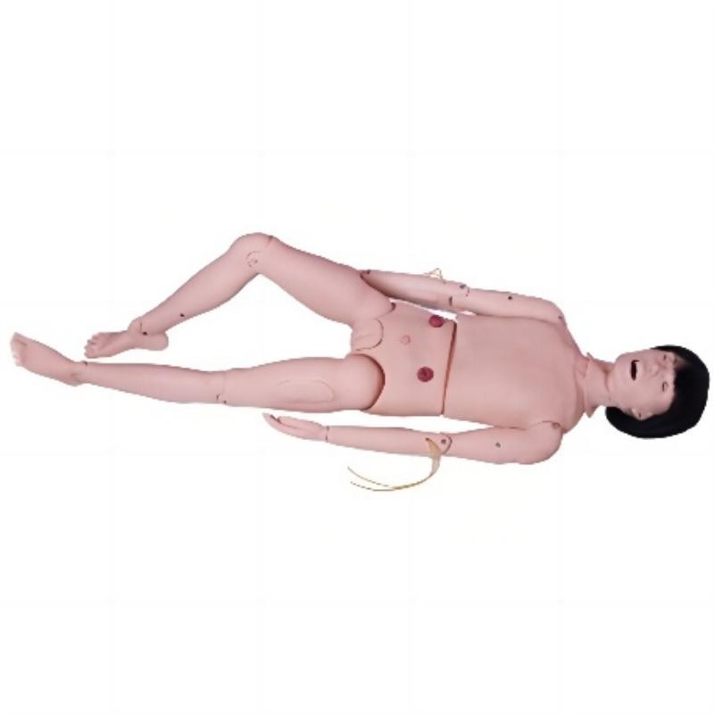 本模型是一款集氣管切開吸痰與鼻腔吸痰、護(hù)理于一體的專用護(hù)理人模型,身高 170cm。它的雙眼能夠眨動(dòng),關(guān)節(jié)十分靈活,可擺出多種體位,充分滿足各類操作需求。模型的解剖標(biāo)志明顯,用手可輕易觸及兩乳頭、肋骨、胸骨及劍突,胸部富有彈性,外皮還能打開,讓人觀察到真實(shí)大小的肋骨。