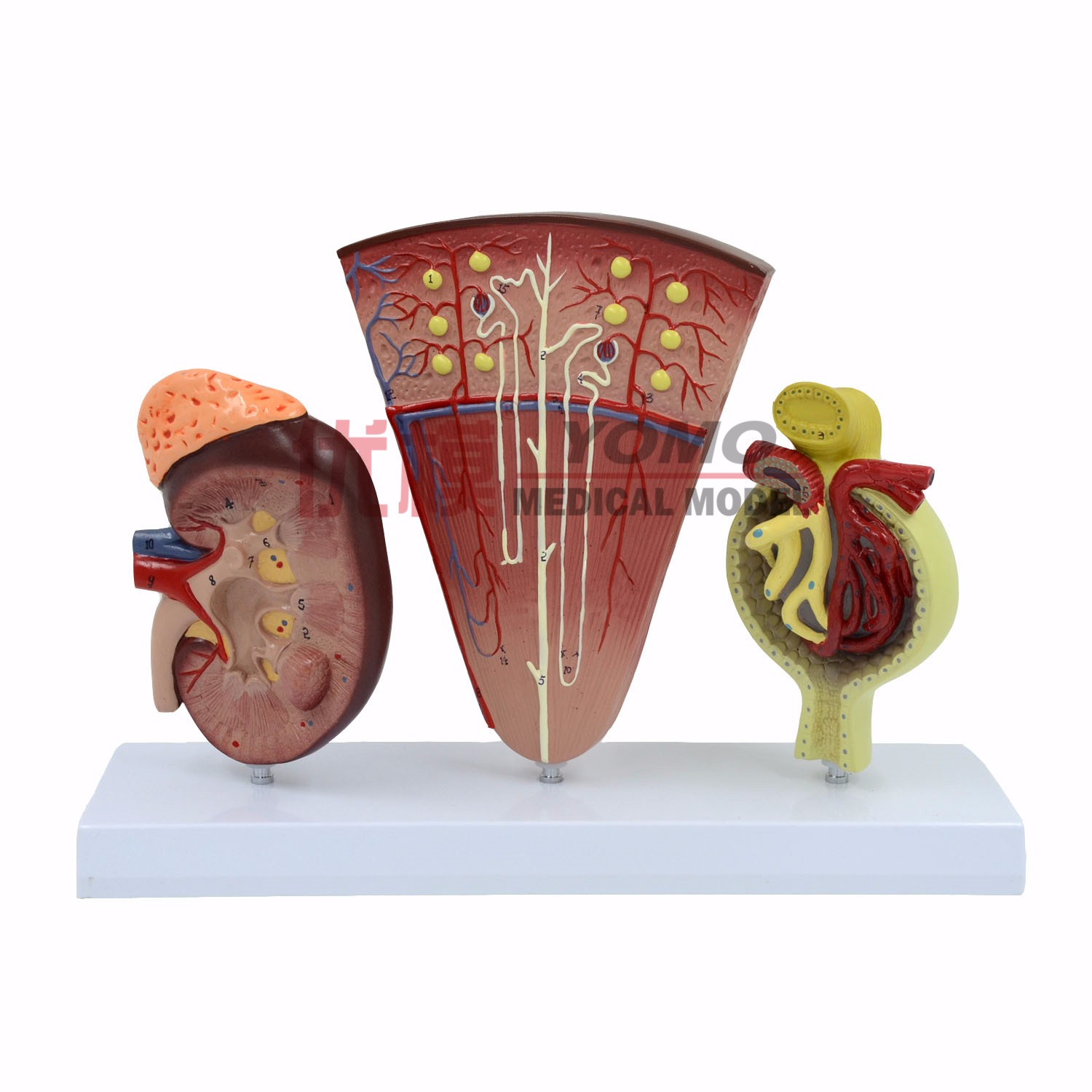 產品介紹:此款模型由腎剖面、腎單位和腎小球等3個放大模型組成,顯示腎剖面結構(腎皮質、腎髓質、近端小管、遠端小管、髓袢、集合管、乳頭管、腎小盞、腎大盞、腎盂、輸尿管)由進口環保PVC制成,人工寫色,做工精良。