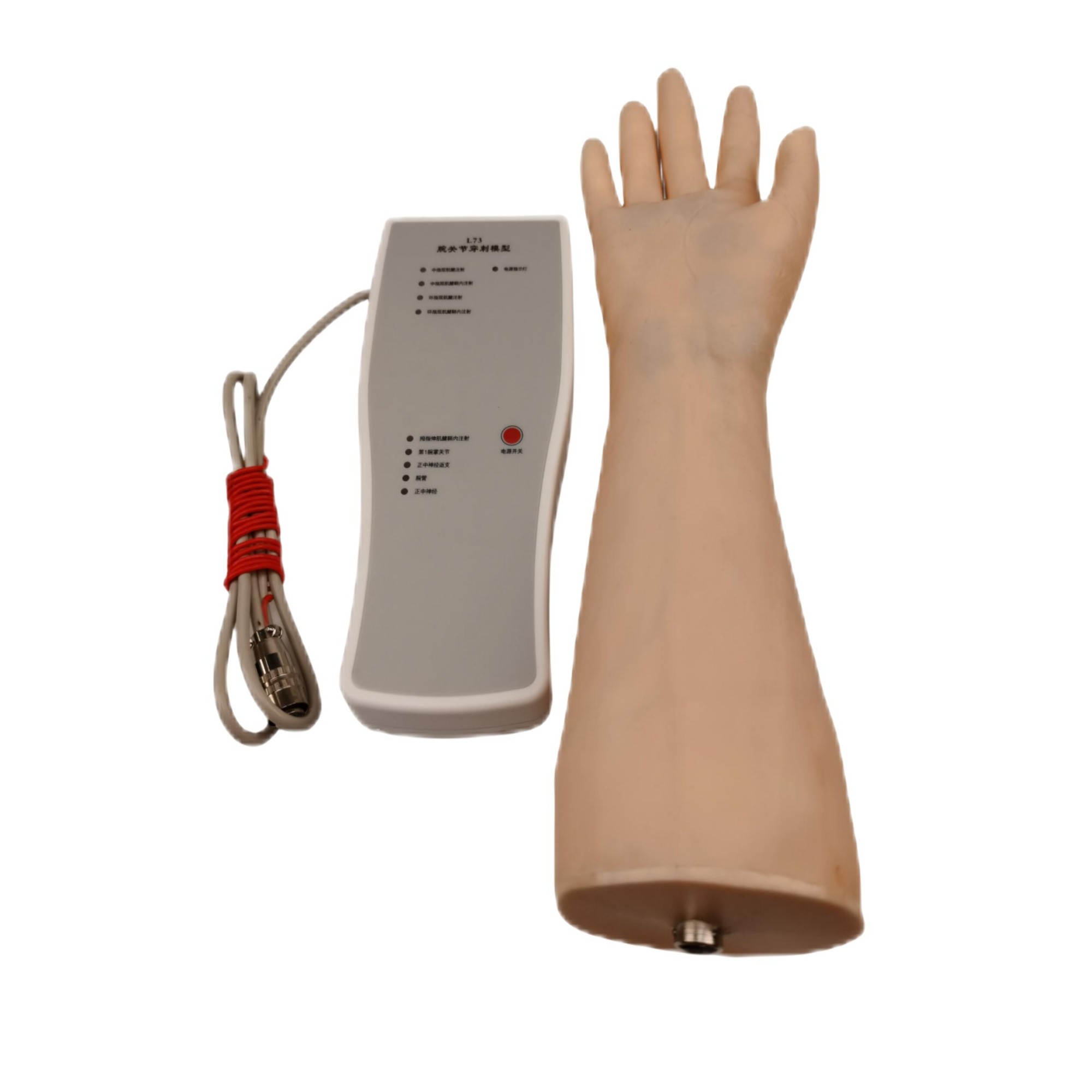 此模型為成人右側上肢一部分,有完整的手部及腕關節,關節可適當活動,方便穿刺,解剖結構精確,包含神經、血管、肌腱。