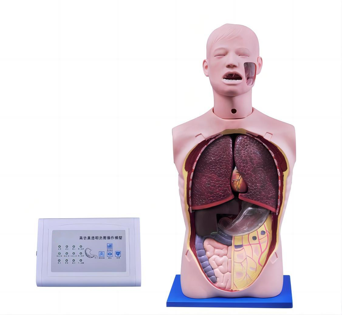 這款成人上半身護(hù)理訓(xùn)練模型優(yōu)勢盡顯。產(chǎn)品上,解剖精準(zhǔn),口腔至腹腔臟器俱全,高強(qiáng)度透明材質(zhì)可全程觀測胃管操作,還有透明示教區(qū),旋轉(zhuǎn)支架與體位調(diào)節(jié)靈活,關(guān)鍵部位有亮燈提示。技能方面,涵蓋多種洗胃法、胃腸減壓、十二指腸引流等。兼具瞳孔示教、頸動(dòng)脈搏動(dòng)模擬,能依病情設(shè)體征,滿足各類基礎(chǔ)護(hù)理教學(xué),貼合真實(shí)臨床。