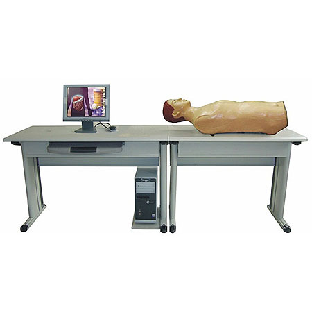 ■ 電子標準化病人能模擬43種腹部檢查體征,同機器人一樣實現智能化控制,真實地模仿人體腹式呼吸和腹式呼吸時肝、膽囊、脾在膈肌下的運動,創造了一位智能化的仿真病人,供學生進行反復地觸診訓練。