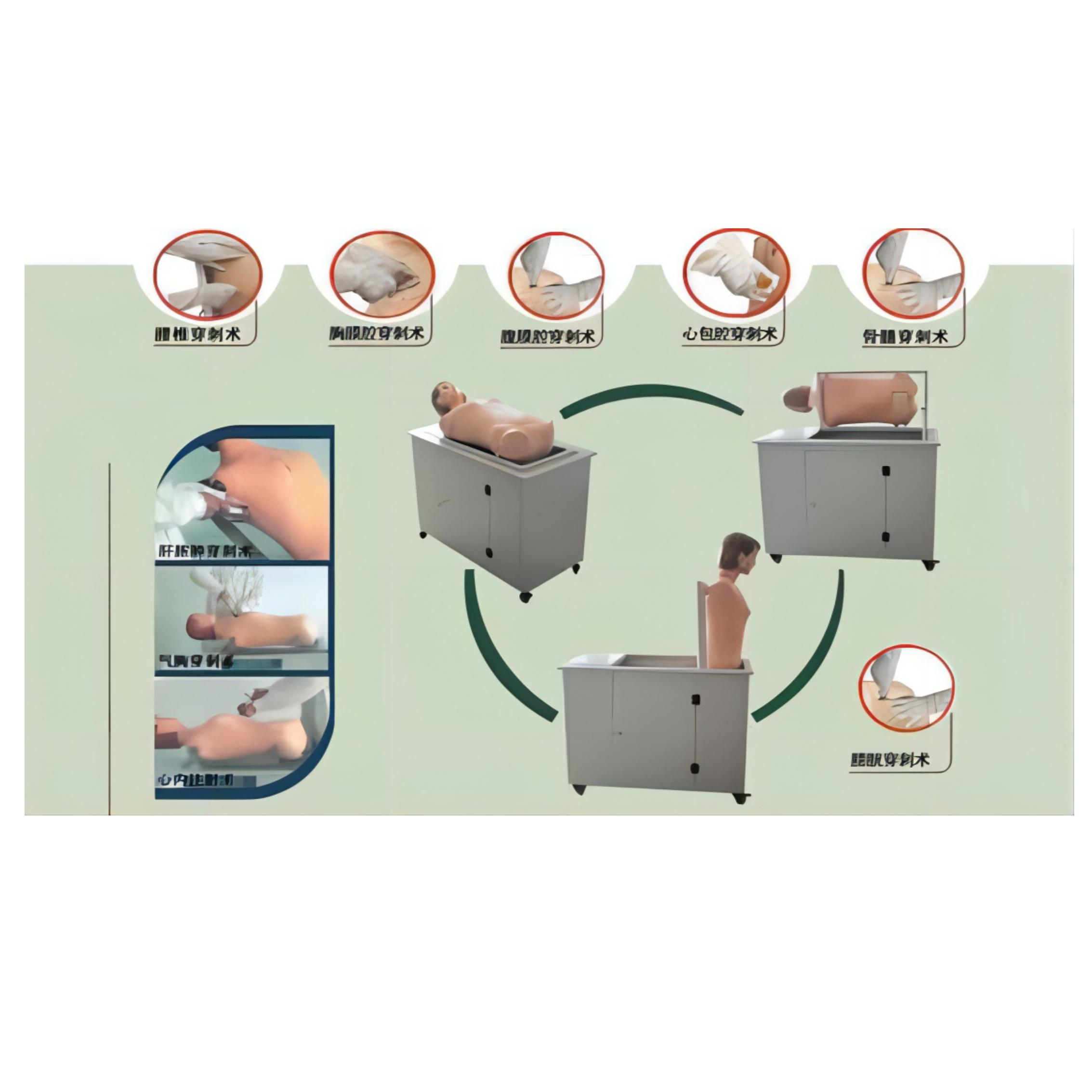 本產品用于完成診斷學教學大綱和執業醫師技能考核大綱規定的重點掌握內容:、胸腔穿刺術、腹腔穿刺術、腰椎穿刺術、心包穿刺術、骨髓穿刺術、氣胸穿刺術、肝膿腫穿刺抽膿術、心內注射術、膀胱穿刺術、叩診技能訓練、術前無菌術訓練等項內容。