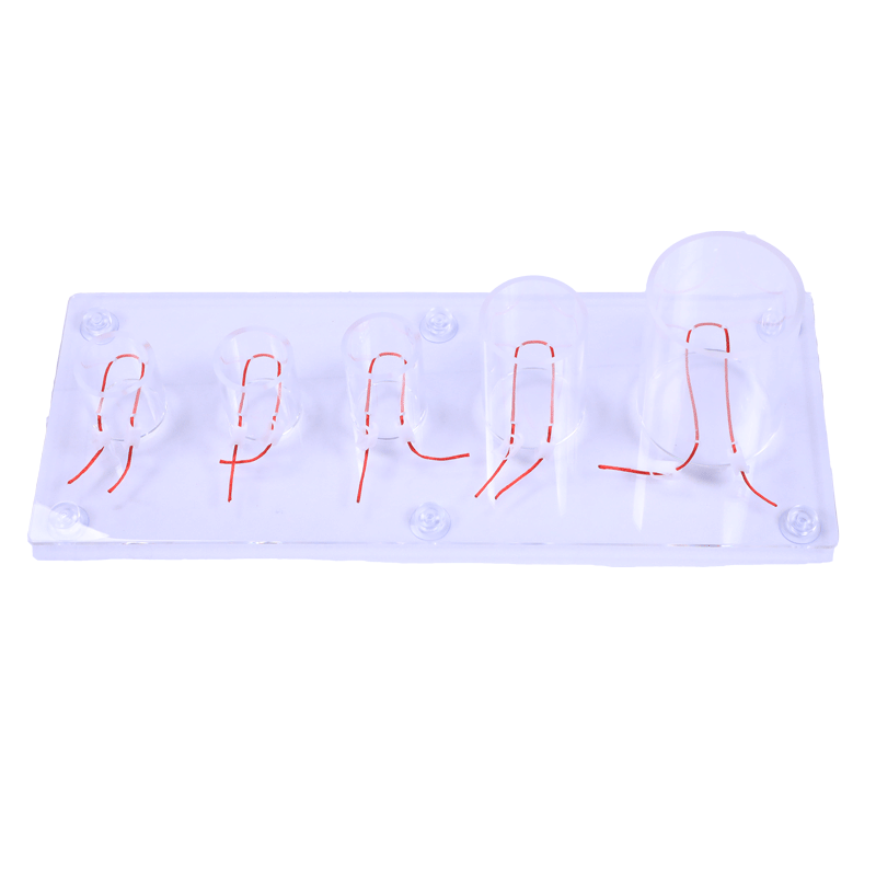 ■ 由透明材質制成,五種不同大小的圓柱體構成不同的打結空間。