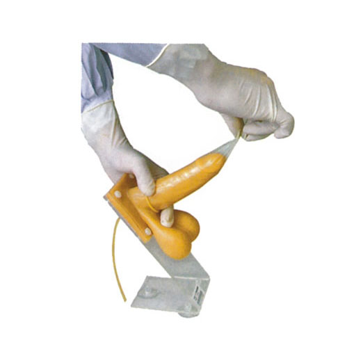 勃起的陰莖、12只避孕套、注射器和模擬精液組成,模擬射精過程和操作。