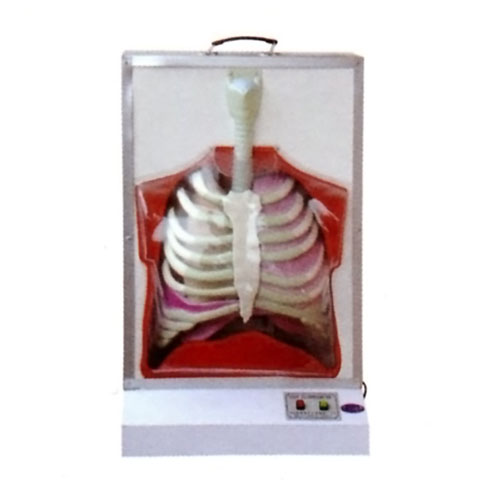 模型是由力學機械和同步電子電路程序控制組合成,能動態模擬呼吸運動。