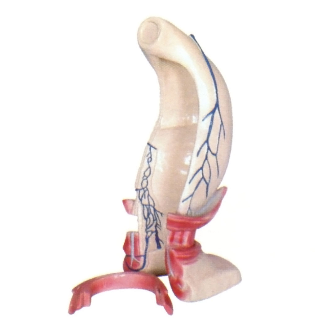 博友BLM1090直腸肛管直環及靜脈通道模型可分為2部件(直腸和肛管模型以及肛門外括約肌),顯示直腸和肛管的形態結構及其腔面內景,包括肛柱、肛瓣、肛竇、齒狀線、肛梳、白線、肛提肌和肛門內、外括約肌等結構。顯示直腸上、下靜脈和肛靜脈等。