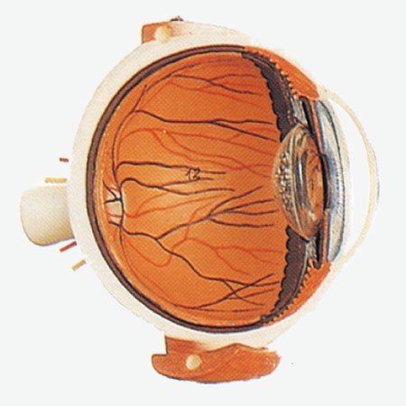 博友BM1190眼球放大模型該模型將眼球縱切成兩部分,左半側的晶狀體與玻璃體為固定形狀,右半側的鞏膜可局部打開看到脈絡膜,眼球內部顯示睫狀體、視網膜以及視網膜剖面(視網膜神經層構造)等結構,共有28個部位指示標志。