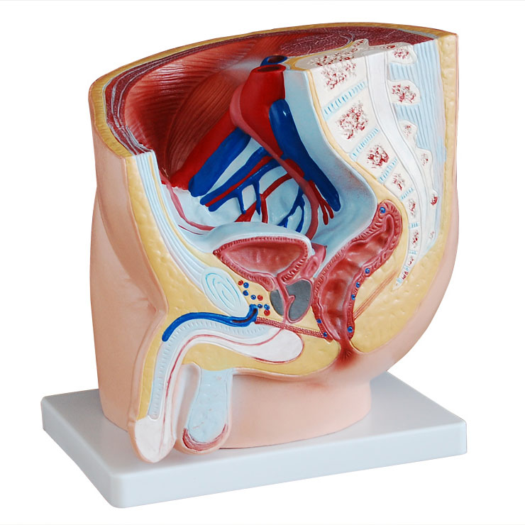 BOU-331A男性盆腔正中矢狀解剖(1件)作矢狀切面,顯示男性生殖器官和膀胱、直腸在骨盆中的正常位置。男性盆腔正中矢狀解剖(1件)用PVC制成,安放于塑料座上。 包裝: 57x46x62CM, 8件/箱, 15KG 材質:進口PVC