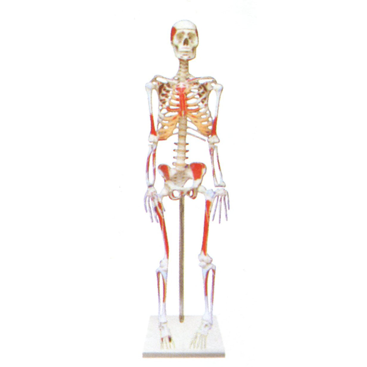 博友 BM1008 人體骨骼附肌肉起止點著色模型,全身骨架串制直立,高度為 85cm ,采用高級 PVC 材質。該模型在清晰呈現骨骼結構的同時,對肌肉起止點進行著色,為醫學教學、人體結構學習提供了直觀實用的參考。