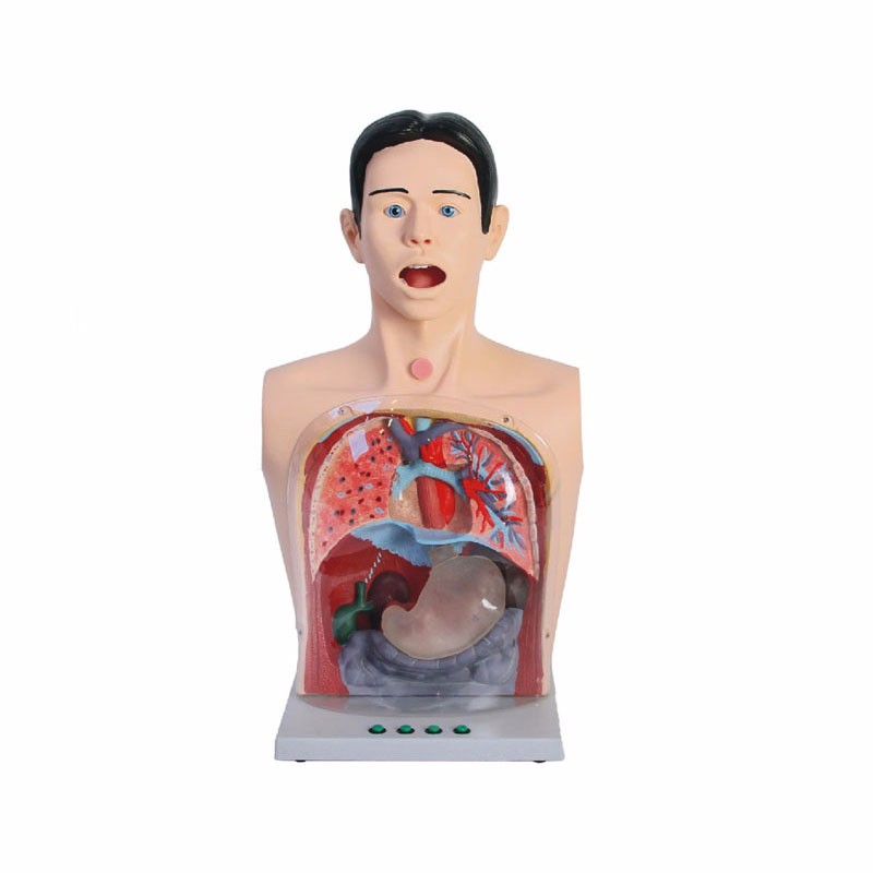 解剖結構精確,包括牙、舌、懸雍垂、氣管、支氣管、左右肺臟、食管、胃、膈、膽囊、胰腺、脾、十二指腸、結腸等結構。