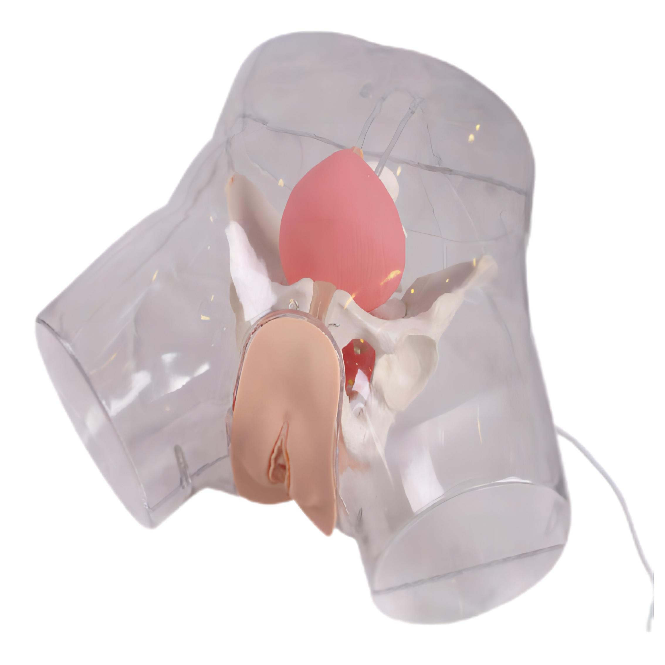 這款模型具有諸多出色功能:其生殖器官高度逼真,小陰唇可分開,能充分暴露尿道口與陰道,便于操作練習;恥骨部呈透明狀,可清晰觀察骨盆和膀胱的相對位置,骨盆固定更利于掌握插管角度;插管時的阻力、壓力模擬真實人體;還能練習插管全程,從外看到氣囊導管狀態;適配臨床標準雙腔或三腔管,且插管正確才會流出 “尿液”。
