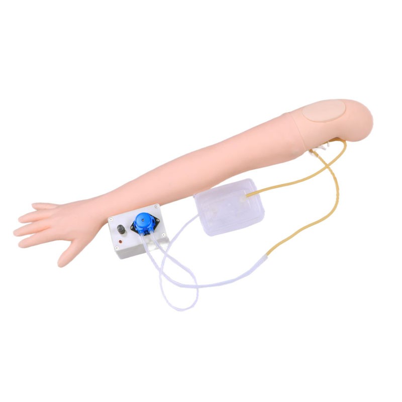 這款模型由仿真手臂與蠕動泵(電子血液循環裝置)構成,具備真實血液循環功能,操作真實且功能強大。其功能特點豐富,手臂含八條主要靜脈血管系統,能開展靜脈注射、輸液(血)、抽血等穿刺訓練,還可進行三角肌肌肉注射;上肢可旋轉 180 度便于練習,進針有落空感,穿刺正確能回血;同一部位可反復穿刺不滲漏,且靜脈血管與皮膚可更換,操作簡便,兼具經濟性與實用性。